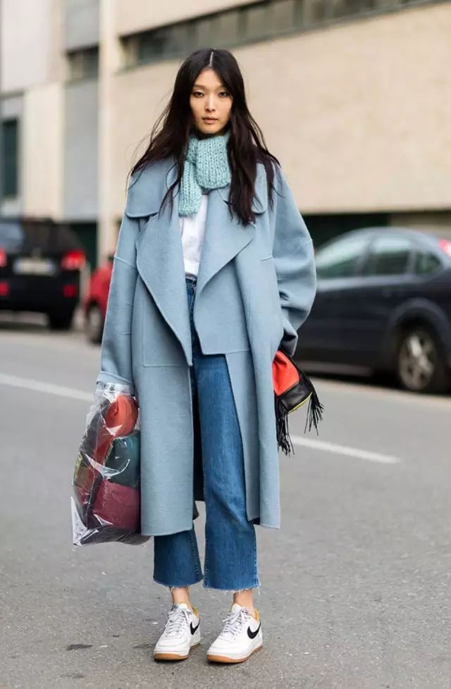 雾霾蓝大衣还有个好处是搭配不用愁。你衣柜里有的黑、白、灰、牛仔蓝等单品统统都是它的好朋友。