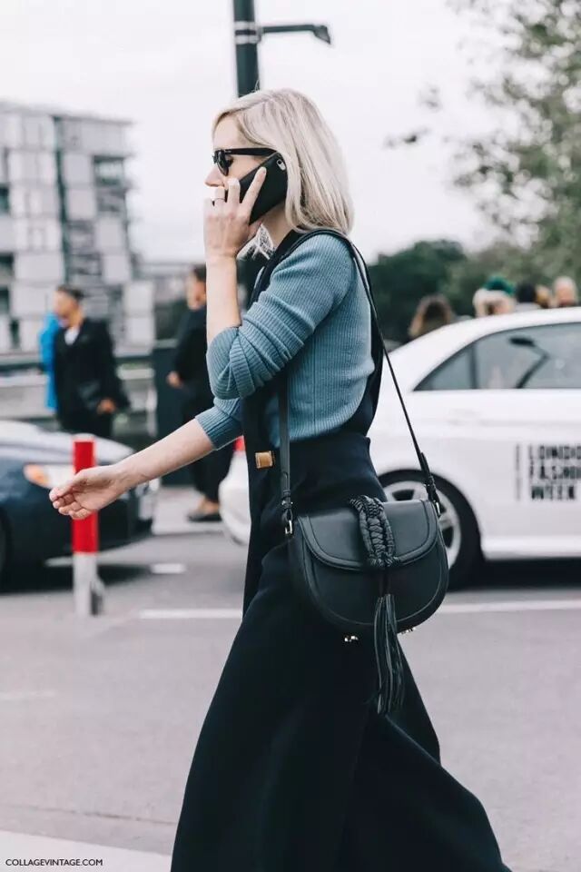 雾霾蓝包包除了自身颜值高惹人爱,还出乎意料的好搭衣服,搭配难度约等于零。