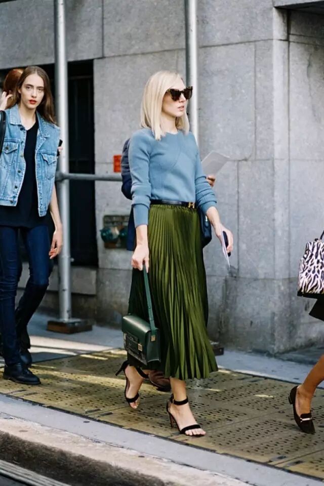 同一件毛衣还可以用来搭橄榄绿百褶迷笛裙,这张图我用过好几次。▼