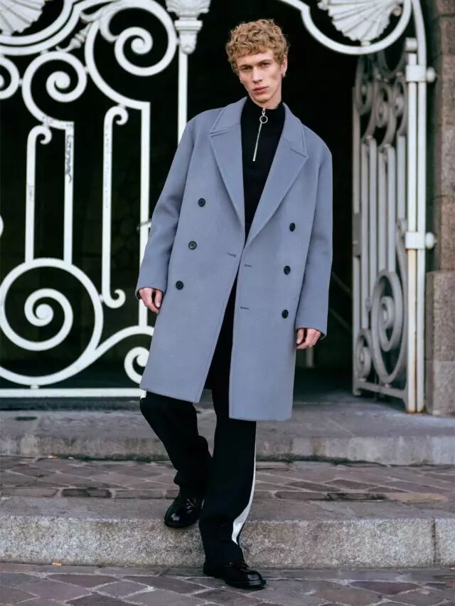 很多大衣虽然款式普通,但一旦配上雾霾蓝色,立刻就有了完全不一样的感觉。