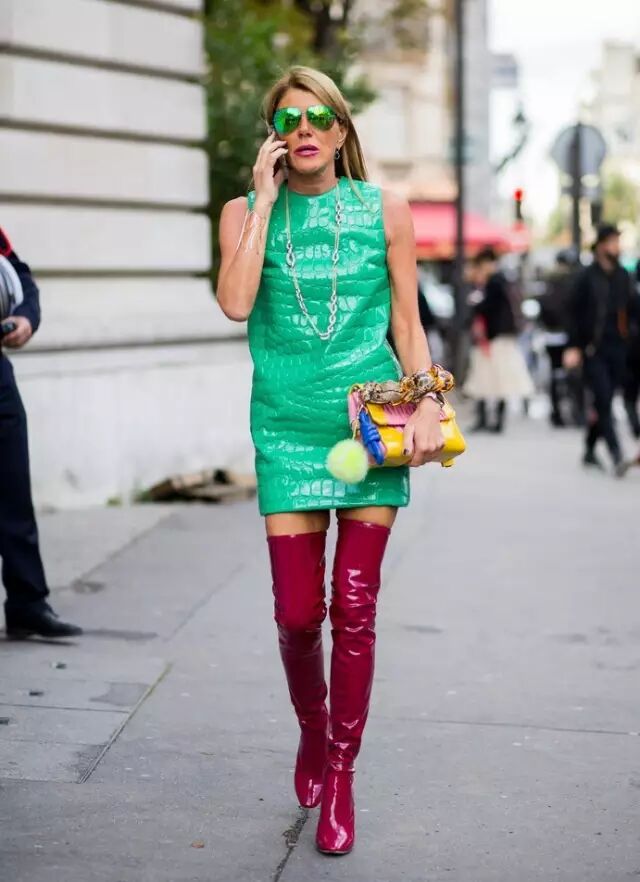 另外,漆皮的材质也要慎选,特别是彩色的漆皮过膝靴,穿起来分分钟变身drama queen。▼