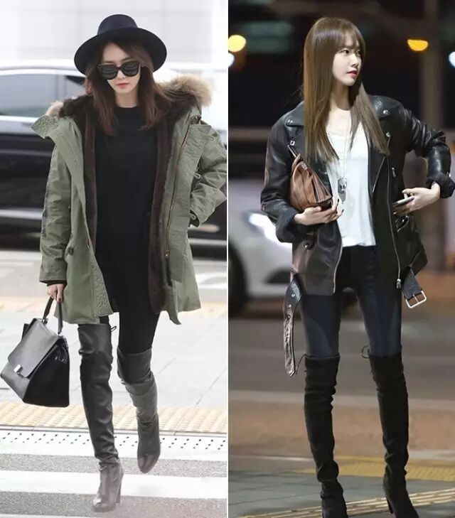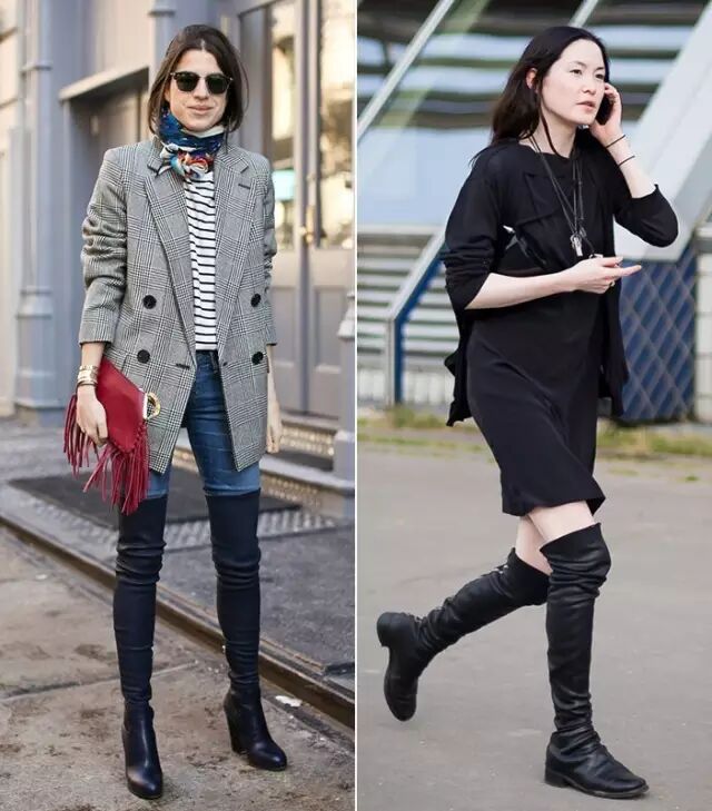 从上面发的图你们已经看出来了,过膝长靴随便搭裤装都可以穿得很时髦。