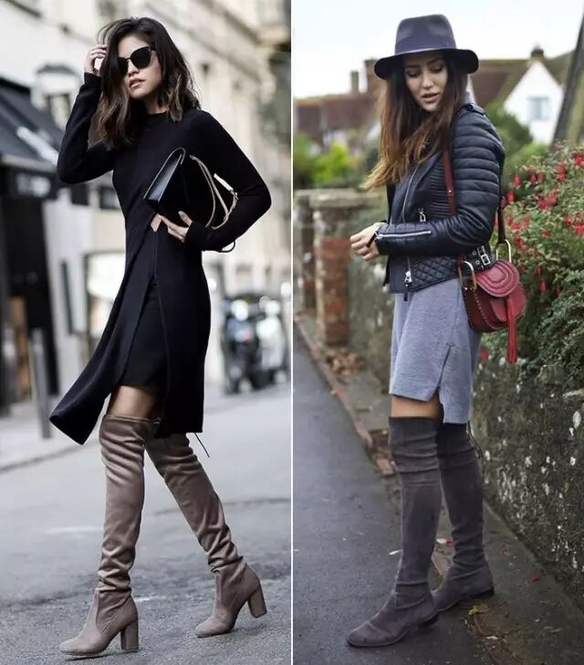 后台很多同学来问我,冬天穿裙子该搭什么鞋子?其实过膝长靴就是最好的选择之一。无论什么长度的裙子都可以用来搭。