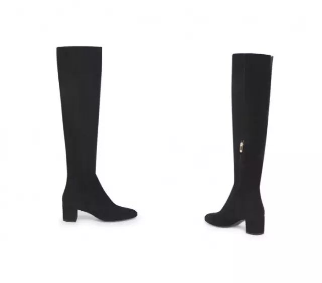 材质上,我最推荐的还是麂皮的过膝靴,对腿部的包裹更好,也不会穿出“女金刚”的感觉,质感看起来更温暖。缺点就是不好打理。▼