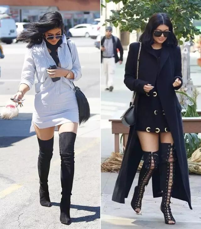 之所以说穿过膝靴容易显高,主要是因为比起短靴,它更容易拉长比例,特别是搭配短裙或者短裤露一截腿的时候。助理小妞最近新买了一双过膝靴,穿去约会被男票夸赞是两米大长腿。(嗯,下图可不是她)▼
