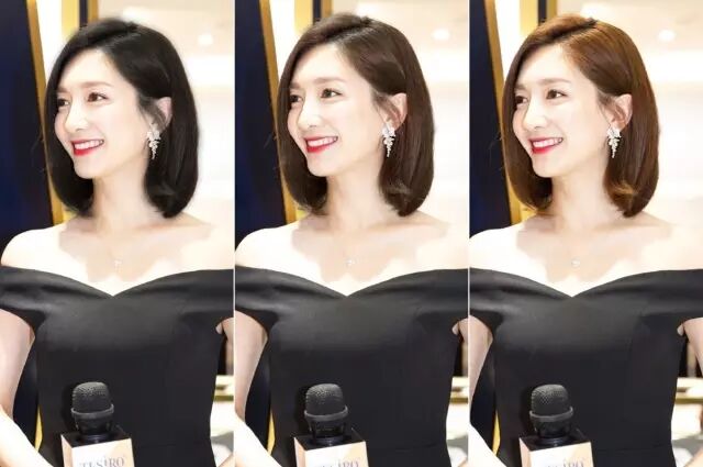 三个发色的江疏影,是不是每个感觉都不一样。减龄效果从左至右递增。最右才是原图。▼