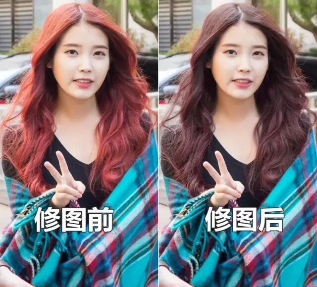 IU之前也染过很鲜艳的红发,但太抢眼了,她的五官都被淹没了。助理小妞帮她把发色调深一点,是不是顺眼不少?▼