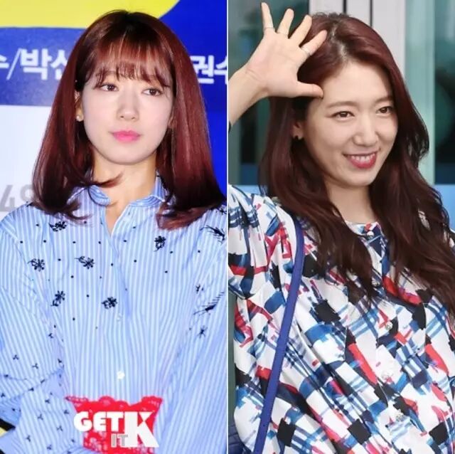 深棕色和我们最常见的黑色比,头发看起来会更有光泽感,也更容易显好气色。气质和黑色也不太一样,黑色比较成熟,深棕色会更活泼些。在这张合照里,圆圆还是黑发,和贾静雯都美貌爆表,但发型看起来就相对沉闷一些。▼