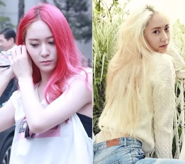 韩国女星郑秀晶就是一个很好的例子,她是冷皮,大红色、金色这种挑战系数很高的颜色她都染过。▼