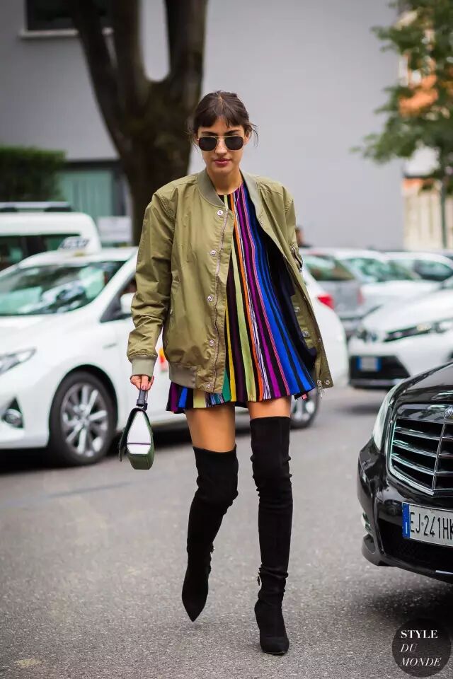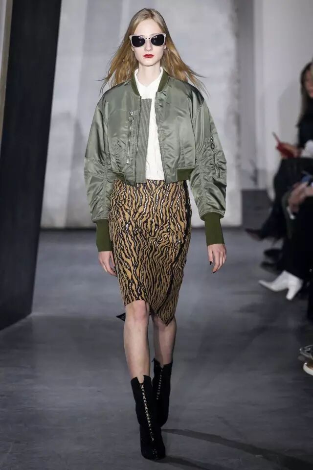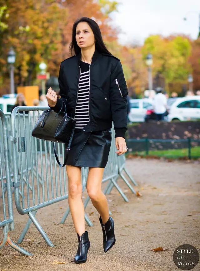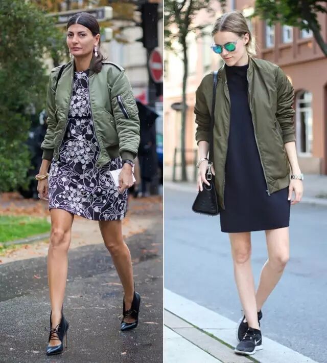 没错,飞行员夹克搭裙子也好看。