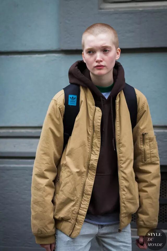 除了在内搭的颜色上多花点心思,还可以选点更有新意的内搭款式。比如飞行员夹克和连帽衫就是绝配,帅气运动两不误~▼