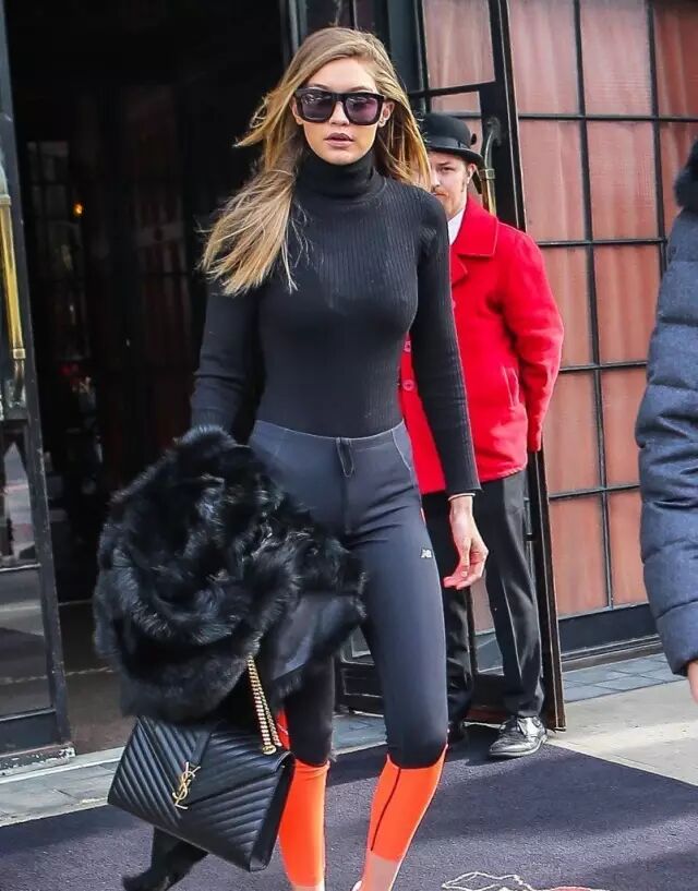 很多人对高领毛衣的成见是,它是大胸的天敌。很容易穿成Gigi这样。▼