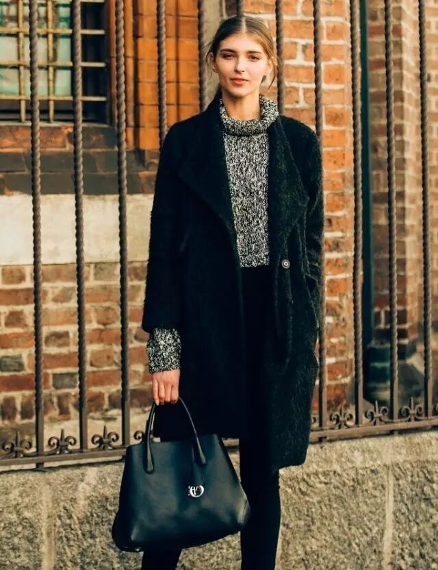 不管什么款式的高领毛衣,只要裹上大衣,都能遮盖不少。▼