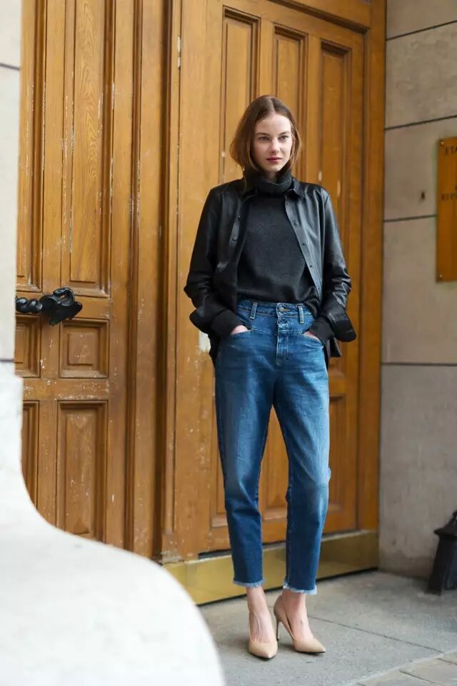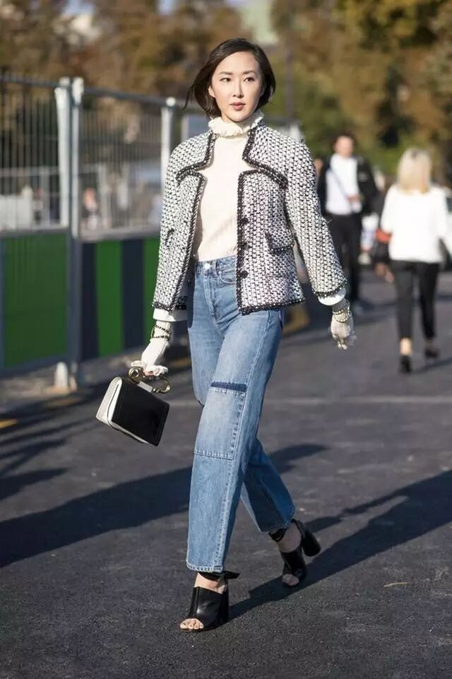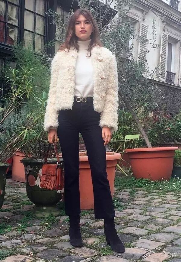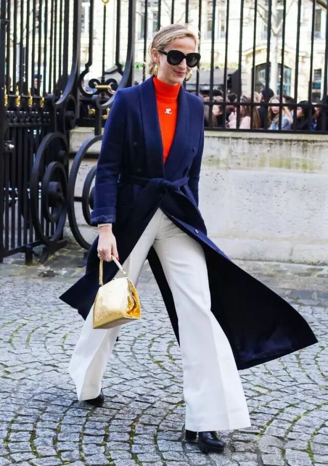 这种贴身款的高领毛衣更适合做内搭。前不久才写过的法国博主Jeanne Damas,就是一个很好的例子。