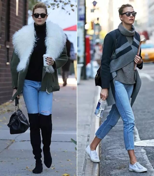 长脖子如KK,无论什么高领穿起来都不在话下。虽然左图搭配更美,但右图更显脖子长。▼