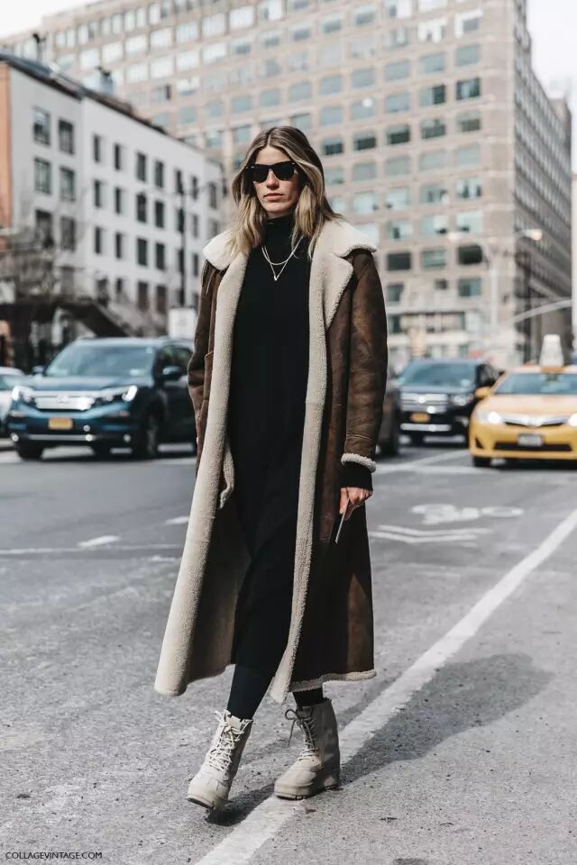 这种没有领子的外套也比较难搭配。而高领毛衣就是解救这些外套的好帮手。▼