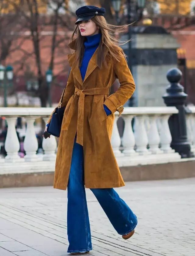 比如这种小翻领的外套,搭窄高领毛衣,潇洒帅气。▼