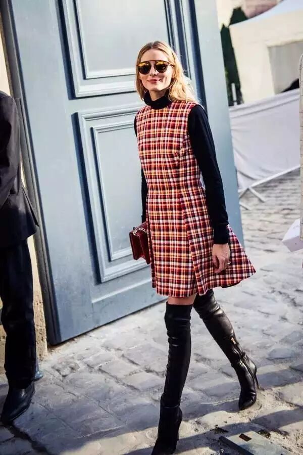 小圆领的裙子一到冬天就不知道怎么穿,用高领毛衣做内搭就可以了。▼