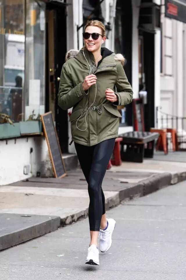 “叠穿”是第一法则。保暖是必不可少的,而且还得是加强版本的。最里面当然是健身房要穿的运动bra 速干衣,其次是卫衣、夹克之类,最外面可以穿保暖性更强的单品。这样热了就可以随时脱下,冷了也可以随时穿上,实用又方便。