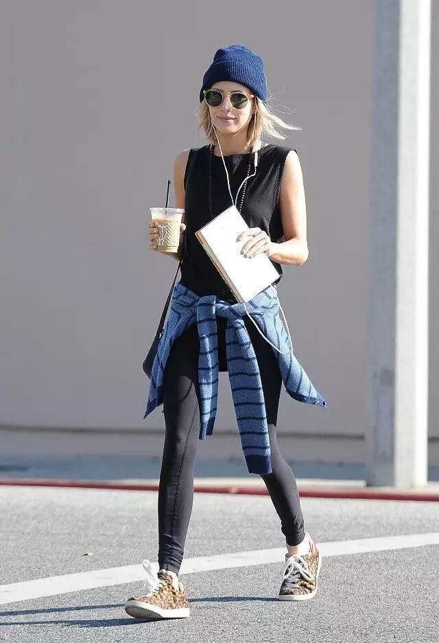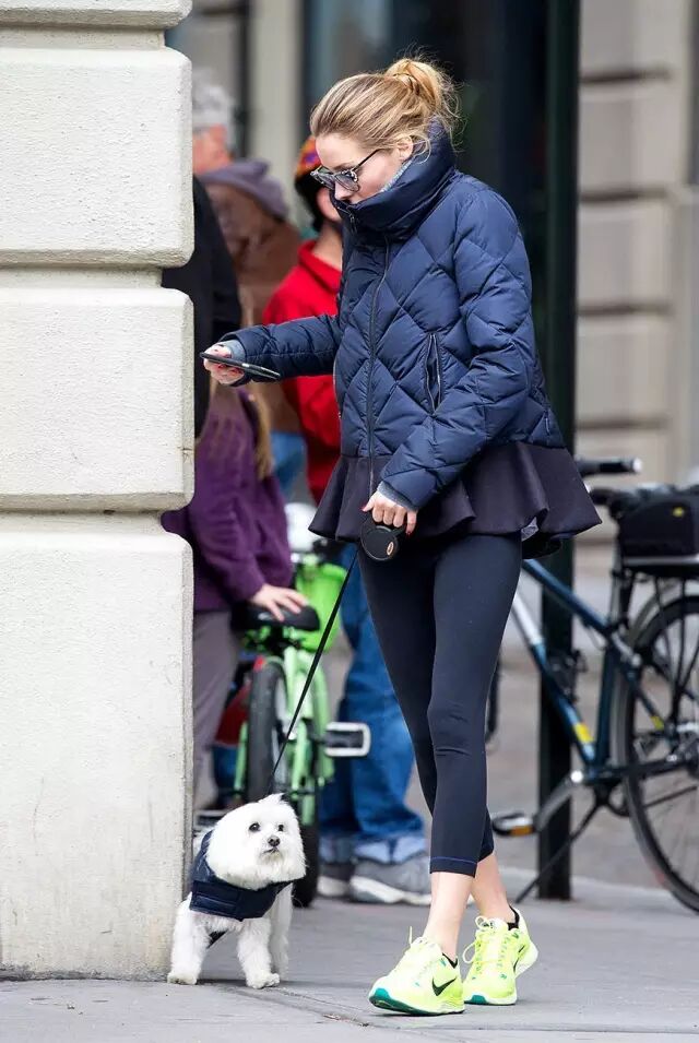 不过,如果下半身只穿一件leggings的话,外套最好选长一点的,可以遮住PP之类,看起来没那么尴尬。