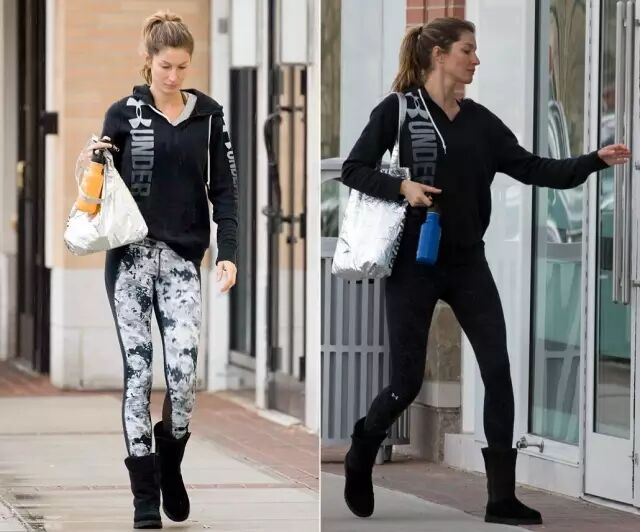 虽然露点脚踝更好看,但天气很冷的话在路上还是不要委屈自己了。吉赛尔邦辰就经常穿着雪地靴去运动,顺便还会带一瓶水。舒服又温暖。▼