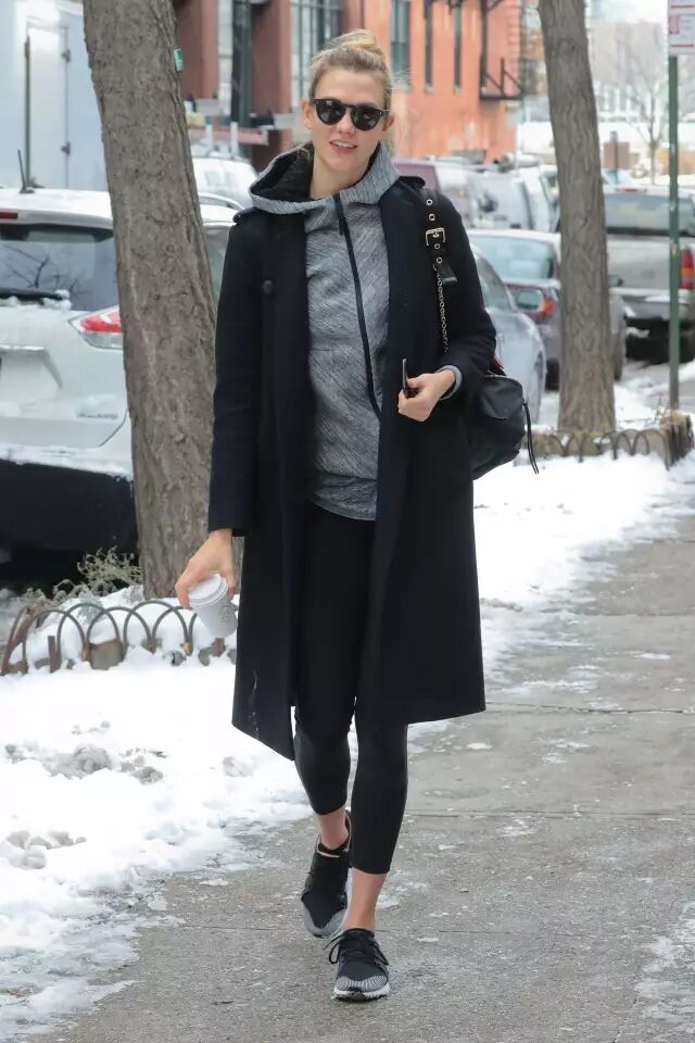像KK这样直接把派克大衣穿在运动装外面也蛮好看的,多了一点休闲风。▼