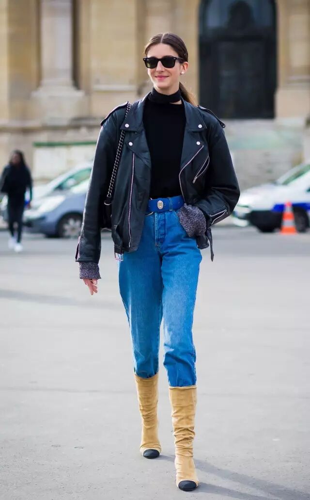 气质足够好的姑娘,搭直筒牛仔裤就是复古酷女郎。▼