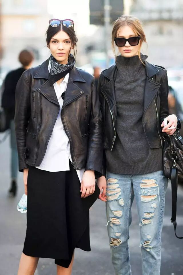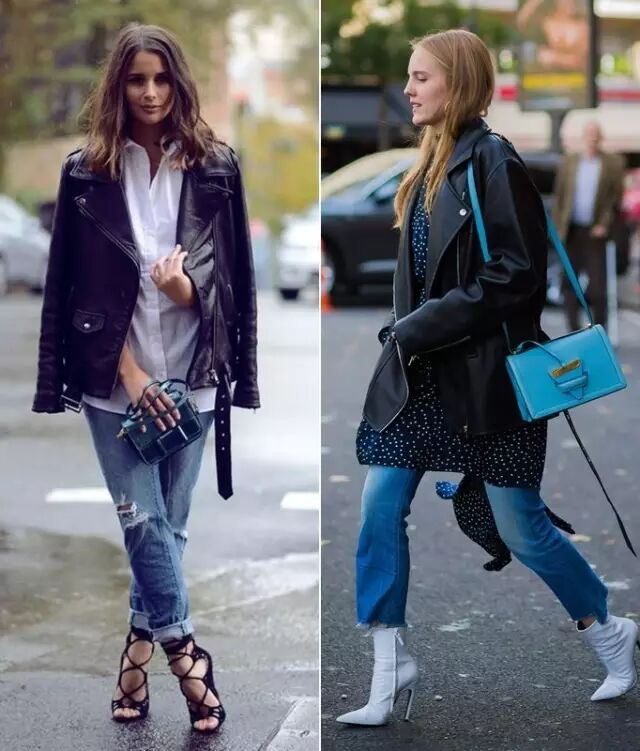 下面两位超模就是一个穿oversized款,一个穿普通款,都很养眼。但你们发现没,oversized的机车皮衣比起传统款,平易近人了不少。▼