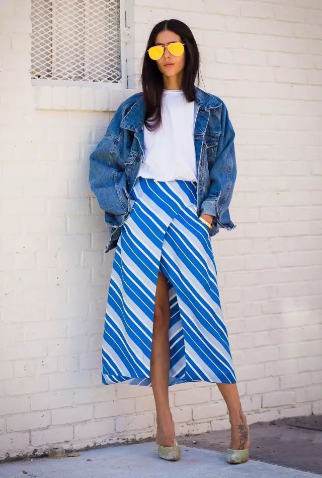 帅气的牛仔外套搭裙装也没压力。▼