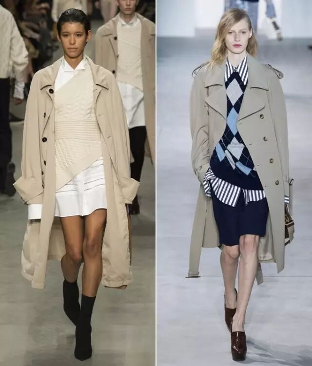 不止西装外套,经典的风衣外套也流行oversized款。Burberry和Michael Kors