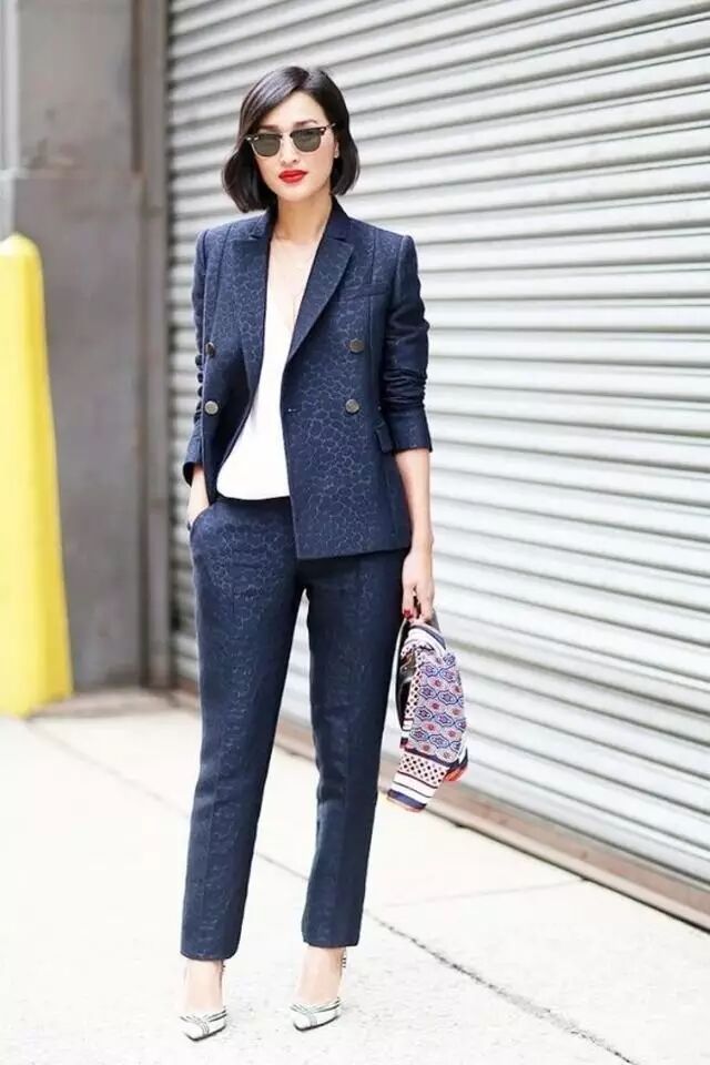 还可以尝试一些时髦小妙招,比如和牛仔外套叠穿,谁说西装严肃来着?▼