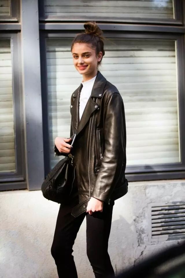 机车皮衣一直都是帅气担当,经典修身短款的版型英气十足。但也有很多人因此对它存疑,总觉得只有纸片人和酷女孩才能驾驭它。▼