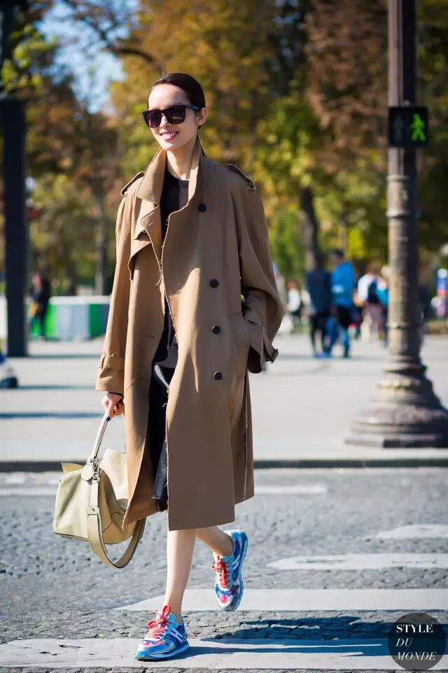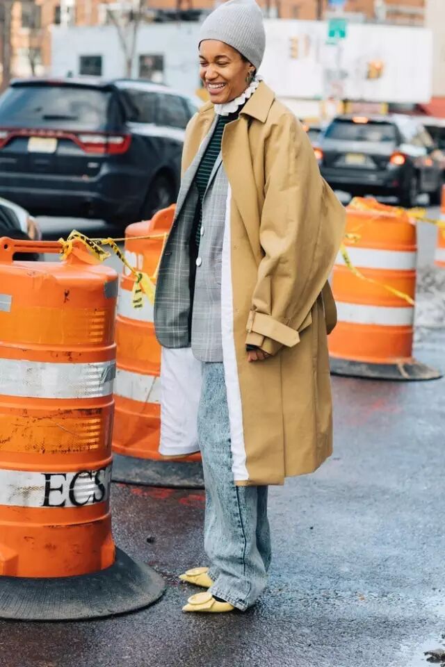 这两年,经典的风衣也开始流行oversized款的了。▼