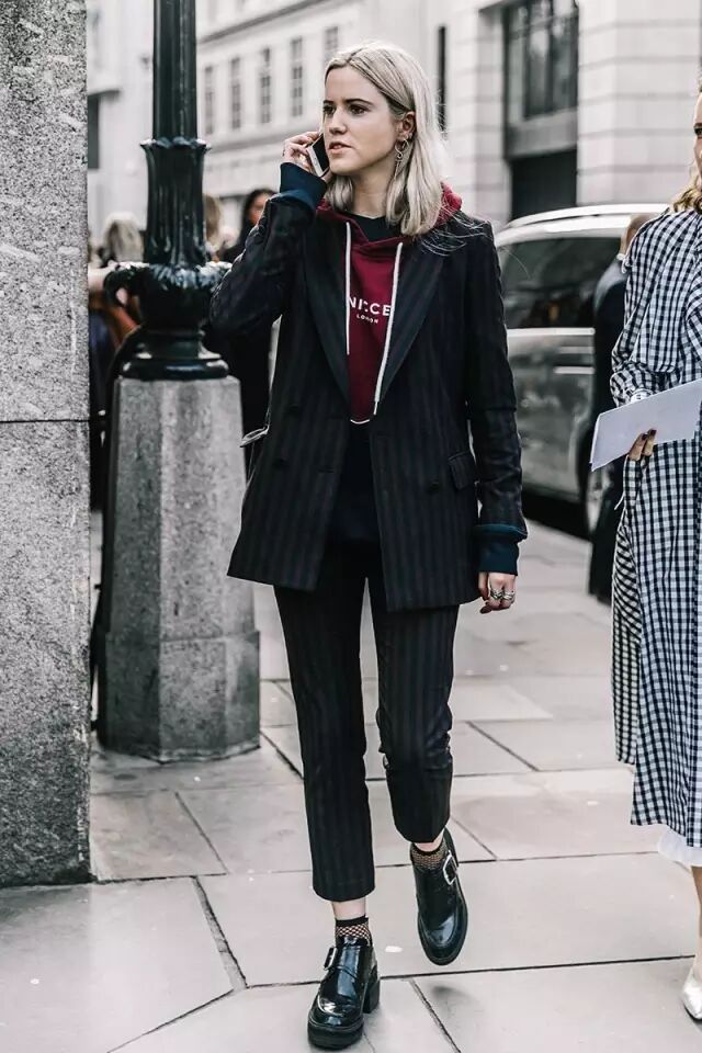还可以把oversized西装当连衣裙穿,踩双高跟鞋,这样的一身去参加爬梯也不跌分。