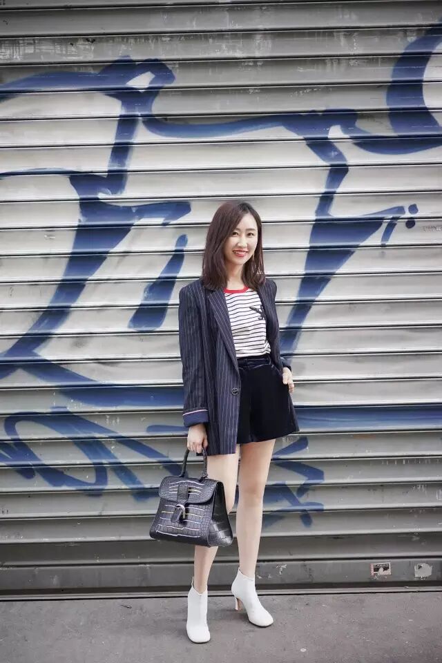 没错,我很喜欢穿短裤,尤其是中高腰的短裤,哈比人显高的不二法宝嘛。短裤搭西装也是常见的思路。这身看起来没有很显高,不怪衣服,是因为我那天拿了一个很大的包,哈比人一定要慎拿大包包~▼