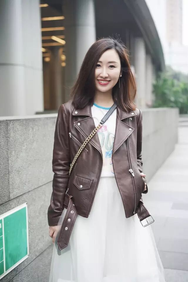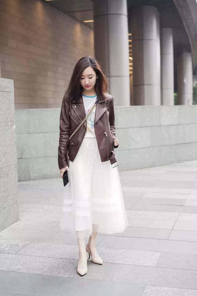 机车皮衣不是酷女孩的专属。有时候,硬朗气质的它,搭配一些甜美或者仙女风的单品,也会有不错的效果。比如平时穿觉得太隆重的白色纱裙,加一件机车皮衣后日常穿,就不觉得突兀了。▼