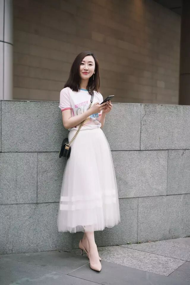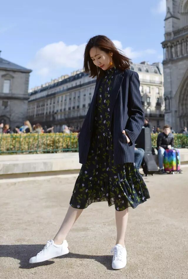 还是那条白纱裙。刺绣夹克和小白鞋也都可以化解白色纱裙的隆重感。这一身很适合穿去约会。▼