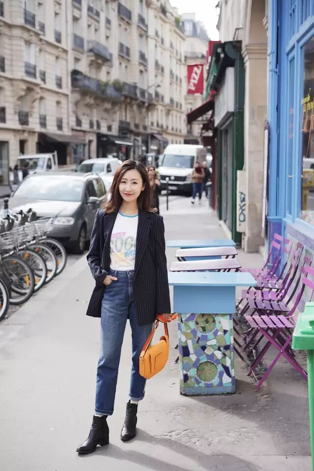 平时我的穿搭风格主要还是以轻松为主。所以,小西装搭配牛仔裤T恤是我的惯用组合。▼