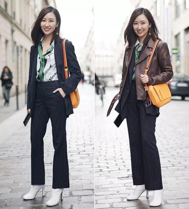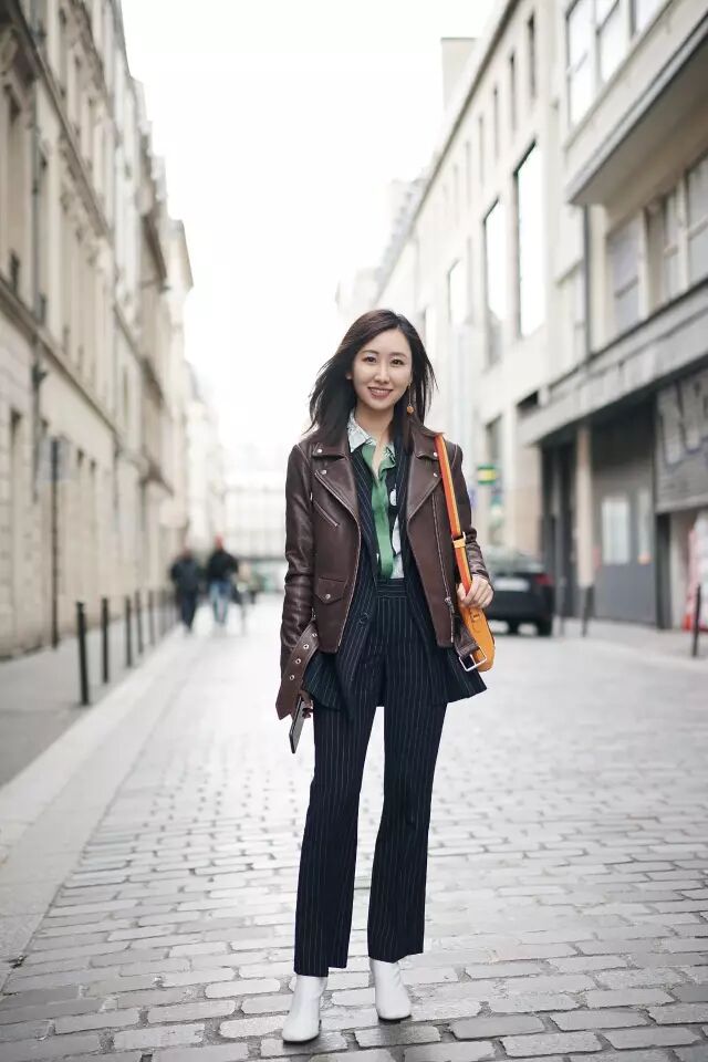 上次去巴黎出差,真的太冷了。我就把机车皮衣搭在下面这套西装套装上。叠搭真是一个又暖又美的好办法!▼