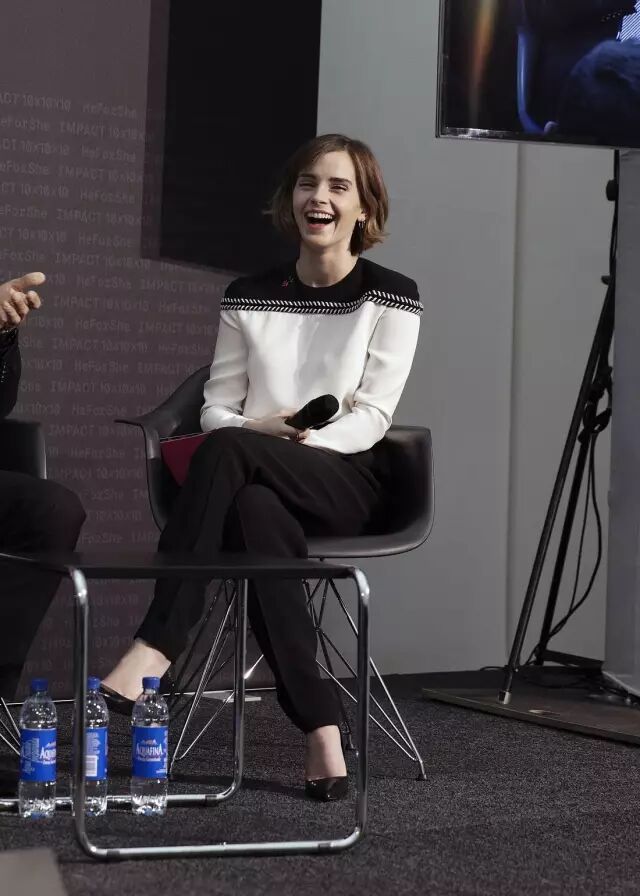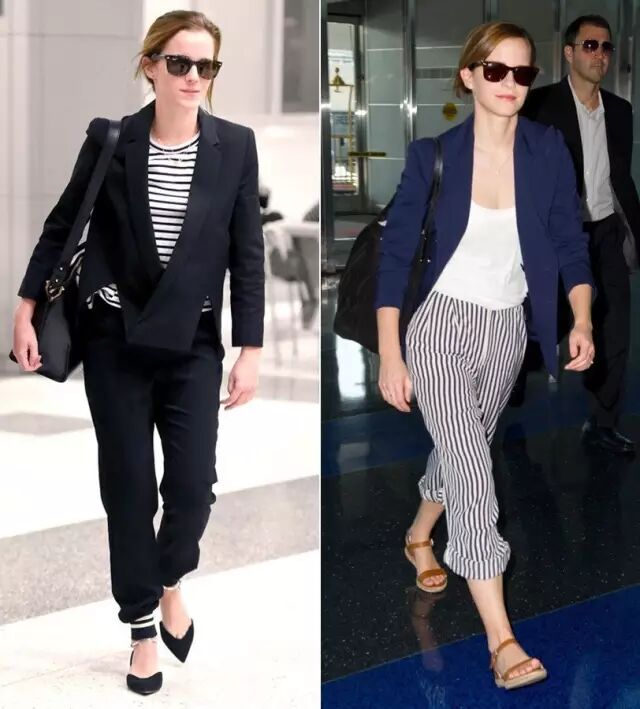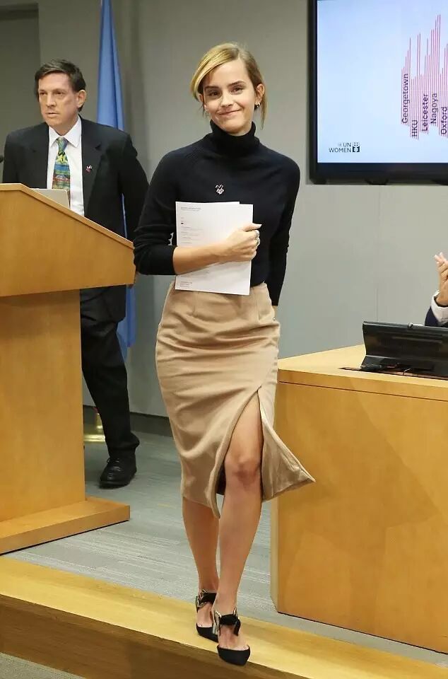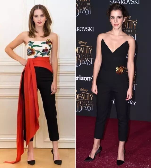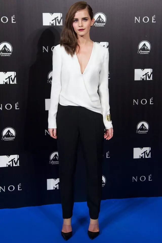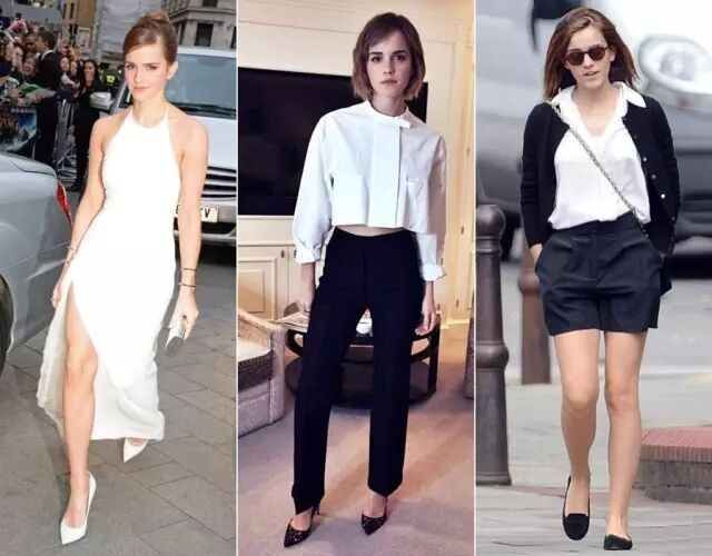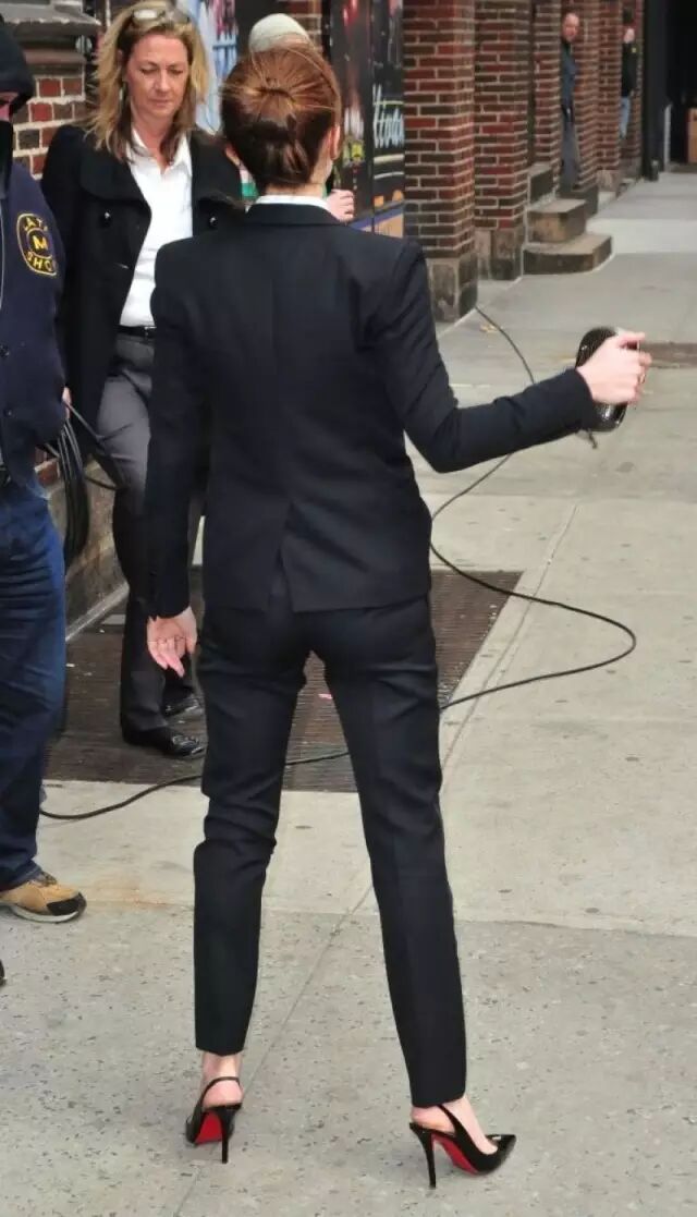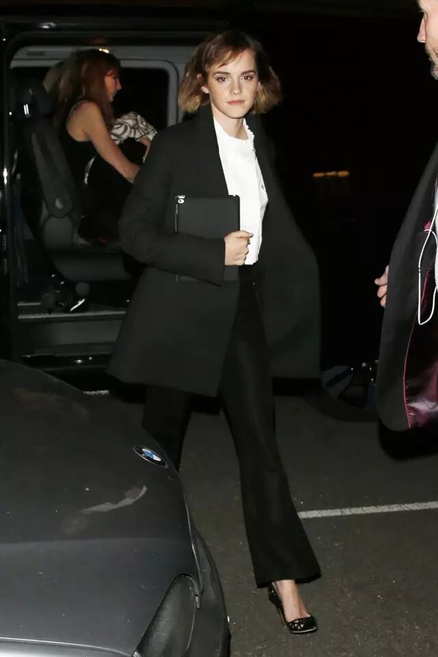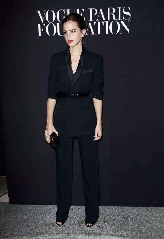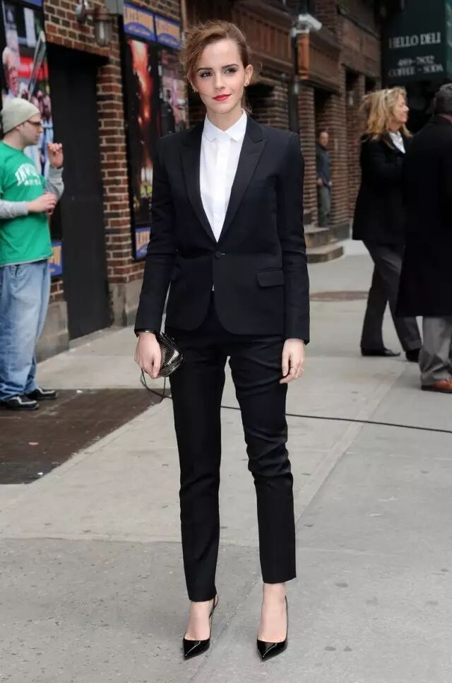 上面这张图被刷屏过很多次,我记得每次下面都有人评论说:看脸。确实,这种黑色西装套装 白衬衫 高跟鞋的搭配其实并不新鲜,而且很容易穿得很行政。Emma能穿得这么好看的原因,难道仅仅是因为脸美吗?