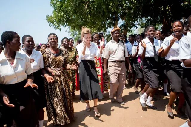 比如最基本的白衬衫搭黑裙子。这是她去探访时的穿搭,其实还有融入到学生当中的用意。看起来很简单的一身吧,但还是美。▼