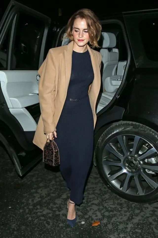这件西装大衣裙也很有个性,既优雅又时髦。Emma依然坚持把头发扎起来。▼