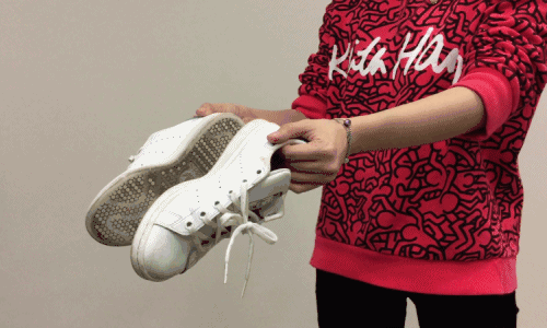 真皮很怕水,清洁真皮小白鞋的时候,先把两只鞋鞋底相向拍打,把灰尘抖落干净。▼