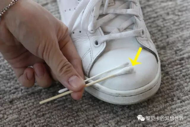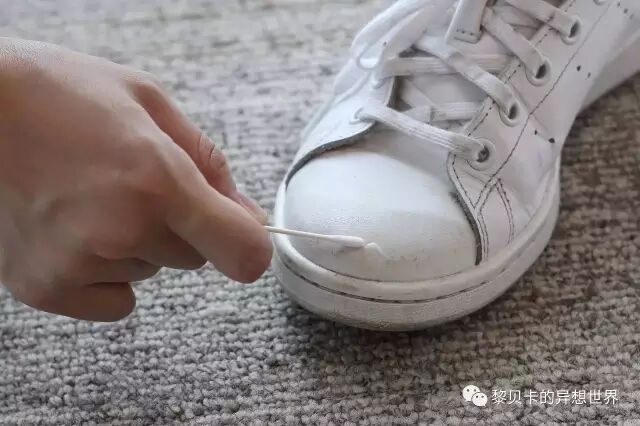 记得,最好拿棉签或纸巾蘸着擦鞋子,千万不要把风油精或酒精直接滴在鞋上。▼