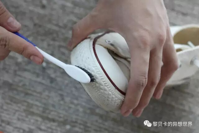 用清水把鞋边的泥土刷一遍后,把牙刷湿水然后沾点小苏打,来回刷几遍鞋边,最后用布擦拭一下,大功告成。▼