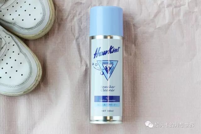 上次逛日本的球鞋店时,我买了一个运动鞋清洁喷雾,是一个运动鞋品牌HawKins出的,折合人民币70块钱左右。它是专门清洁皮革运动鞋(包括天然皮和人造革)的,我用过几次,效果很不错。▼