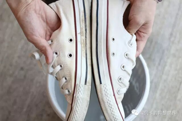 所以,除了清洗,晾干这一个步骤也很重要,助理小妞Erin说,她有一次辛辛苦苦把自己的帆布小白鞋洗干净后,放到阳台上面晒,第二天就变黄了。