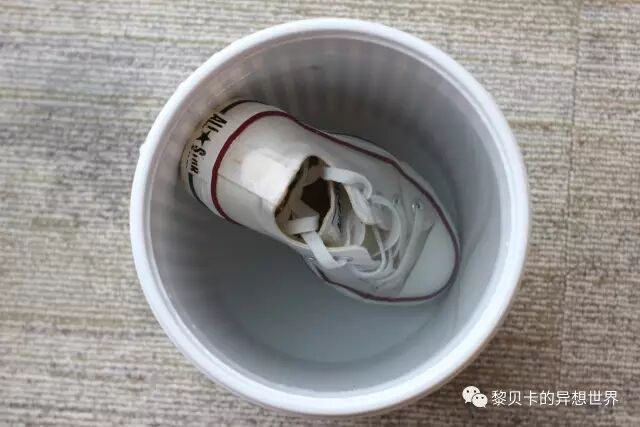 另外,鞋子在用蓝墨水中泡完还要用清水冲洗一遍,最后用“纸包鞋”大法晾干。