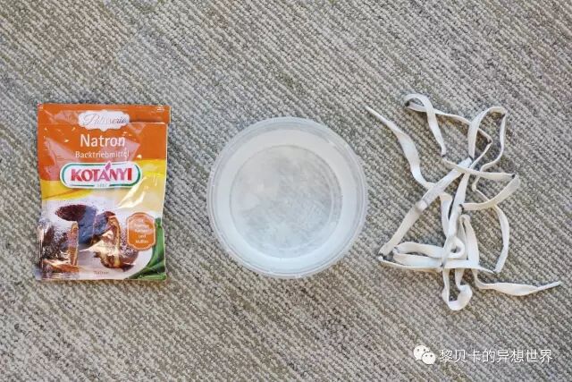 小苏打一般在超市就可以买到,有网友说它还可以用来清洗鞋带。我们装了碗清水,撒一些小苏打还中性洗衣粉,搅拌后把取下来的鞋带来放进盆中浸泡。▼