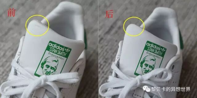 实验到鞋子上也是同样的结果。我个人不是很推荐这个方法,对皮的损害太大了,但救急还是很管用的。